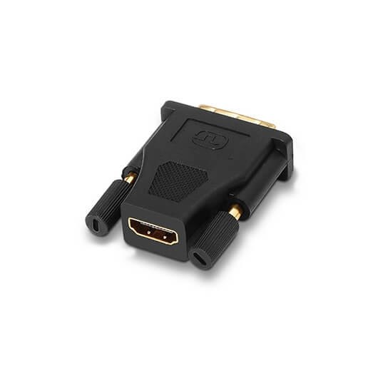 Adaptador DVI a HDMI con conector DVI tipo 24+1 macho en un extremo y HDMI tipo A hembra en el otro. Conector HDMI de alta calidad blindado en oro de 24K. Este adaptador es para convertir un puerto DVI a puerto HDMI hembra para poder conectar un cable HDMI con conector macho. DVI tipo 24+1 pin ofrece la doble banda ancha que el DVI tipo 18+1 pin. Normativas: RoHS. 100% testeado.
