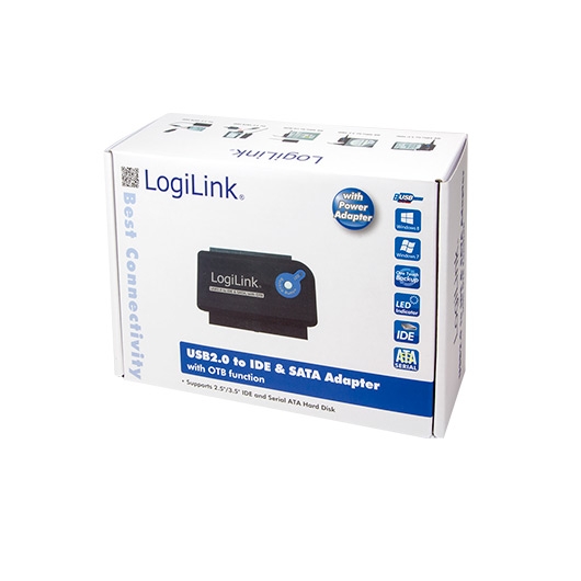 LogiLink Adapter USB 2.0 to 2.5 + 3.5 Zoll IDE + SATA HDD OTB. Tipo de adaptador: USB – IDE SATA. Color del producto: Negro. Puertos de entrada y salida (E S): 1xUSB A male 1×40-pin SATA female 1×44-pin SATA female