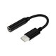 Adaptador USB-C a AUDIO, con conector USB-C en un extremo y JACK 3.5 4 pines hembra en el otro.