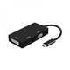 Conversor USB-C a DVI / HDMI / VGA, 3 en 1, con conector USB 3.1 Tipo-C en un extremo y DVI hembra, HDMI 4K@30Hz hembra y VGA hembra en el otro.