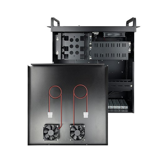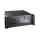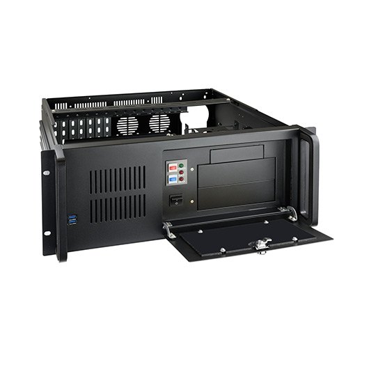 Caja ATX de 4U para montaje en rack de 19 . Permite la instalación de una fuente de alimentación estándar (No incluida). Fabricado en acero laminado en frÃo muy resistente (Sección de 1.2 mm de espesor). Frontal con llave y filtros antipolvo. Muy buena refrigeración gracias a sus 2 ventiladores de 80 X 80mm y uno 120 x 120 mm frontal.