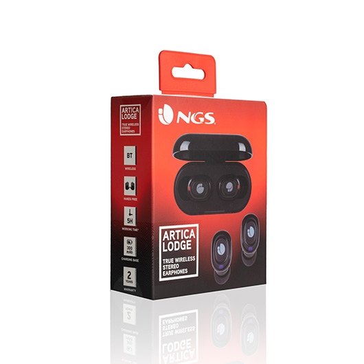 Los auriculares intrauditivos estéreo NGS Artica Lodge, compatibles con la tecnologÃa Bluetooth 5.0 y True Wireless te permitirán disfrutar de la música con total libertad. Los auriculares se sincronización automáticamente solo con sacarlos de la base, se encienden y se emparejan entre sà para que puedas empezar a utilizarlos. Ponte en contacto con tu Asistente de voz y pÃdele que realice una llamada a un numero de tu agenda o alguna búsqueda en internet. Además, podrás disfrutar de la función manos libres sin necesidad de coger el teléfono para contestar o colgar una llamada. Su diseño minimalista y ultraligero está equipado con un sistema de ajuste que te permite llevar tus auriculares durante más tiempo y en cualquier tipo de actividad. Incluye botones de control en ambos auriculares para un sencillo manejo. Controla la reproducción con un suave toque. Con una capacidad de la baterÃa de 45mAh, goza de 6h autonomÃa al 50% de volumen o de 5h al 70%. Su base de carga cuenta con una baterÃa de 300mAh con la cual serás capaz de cargar los auriculares completamente 2 veces sin necesidad de cables cuando no los estés utilizando, lo que te permite 12 horas de autonomÃa sin tener que cargar la base.