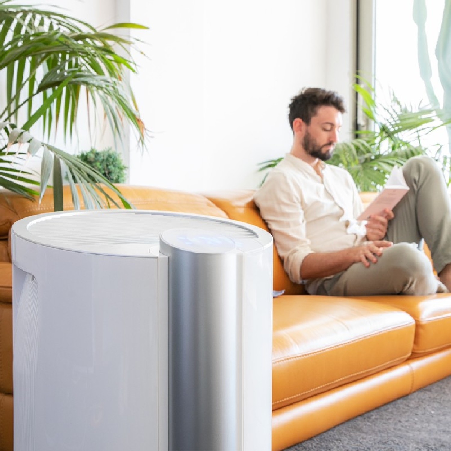 Puede deshumidificar un volumen de hasta 250 m³/h (estancias hasta 90 m²), por lo que su uso es ideal para despachos, oficinas, salones…