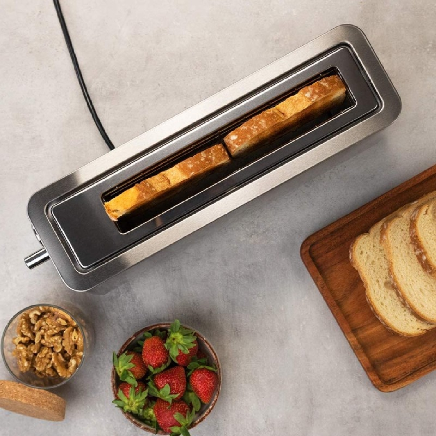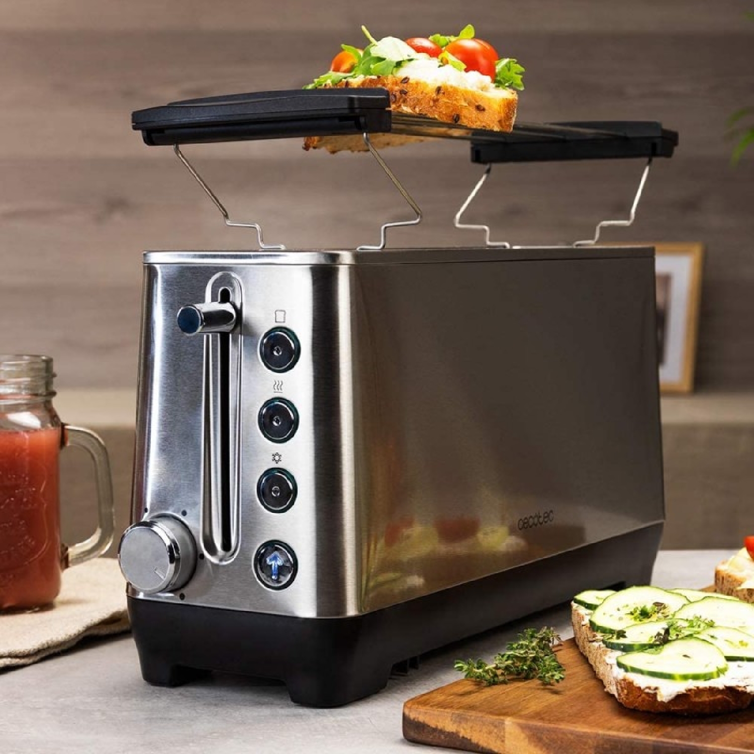 con envĂo gratuitoTostadora de acero con 1 ranura larga extraancha para 2 tostadas, 1100W y soporte para panecillos y bollerĂa.