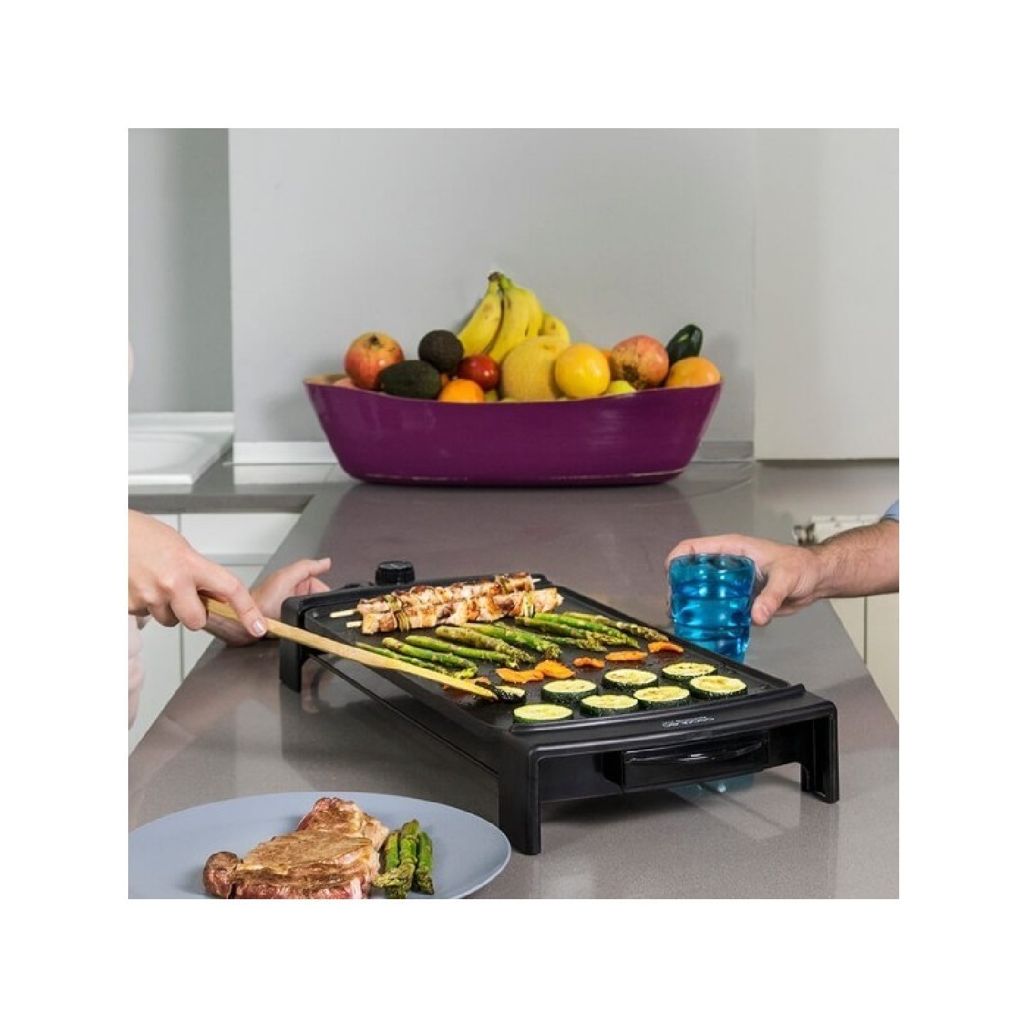 Plancha Grill eléctrica de gran potencia, 2150W para un cocinado rápido.