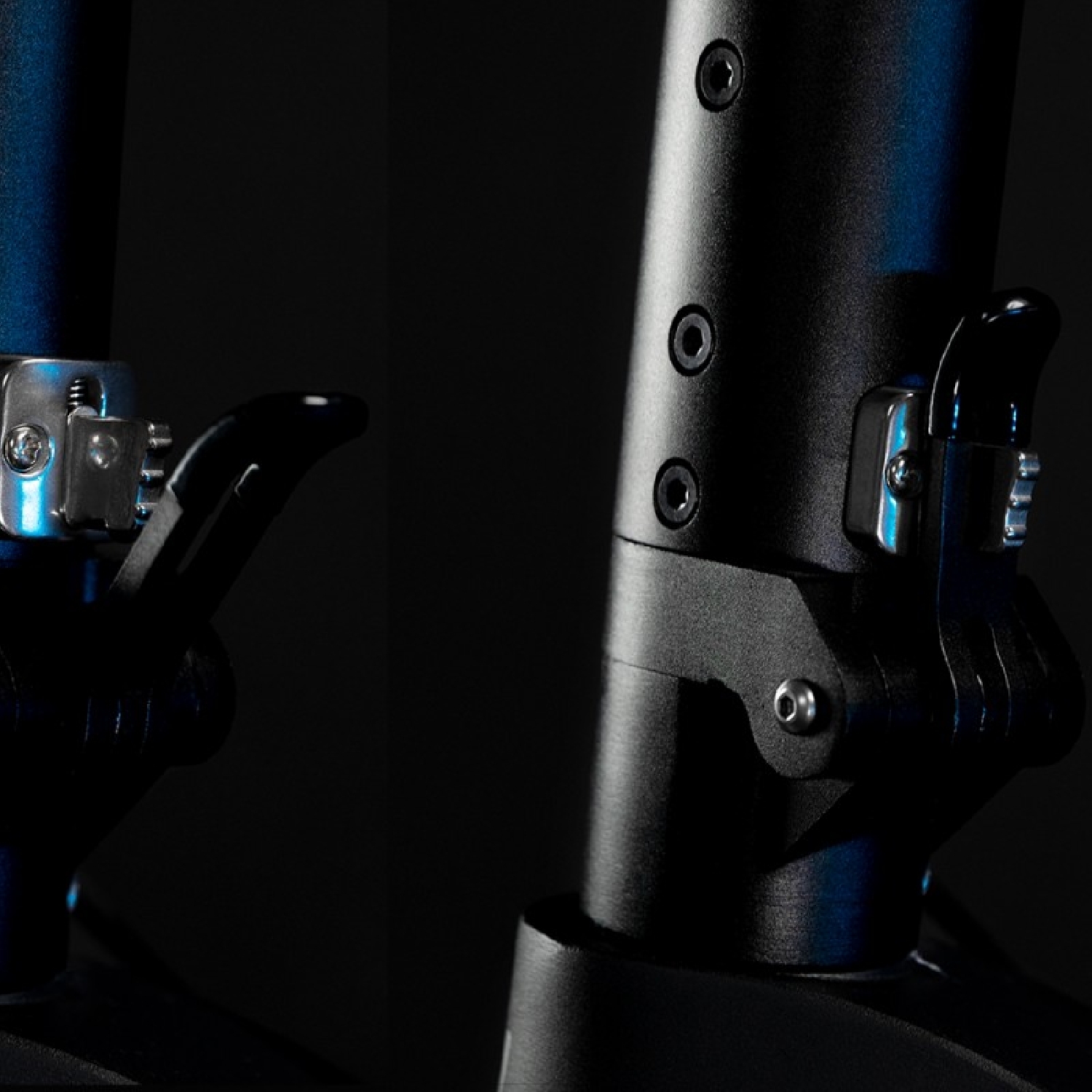 Sistema Mazinger de puños y mástil plegables con doble sistema de seguridad, fácil y compacto para reducir espacio y mejorar su transporte.