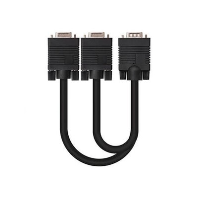 Cable SVGA de alta calidad de formato “Y” para duplicar la señal de salida de tu tarjeta gráfica y reproducirla en 2 monitores simultáneamente. Conector tipo D-sub HDB15 macho en un extremo y dos conectores tipo D-sub HDB15 hembra en el otro. 3 hilos coaxiales (doble apantallado) para señales de color de alta frecuencia más 4 hilos adicionales para la sincronización. Doble apantallado para todos los hilos para evitar pérdida de datos e interferencias electromagnéticas (EMI). Resolución máxima 2048 X 1536. Es un cable perfecto que proporciona una imagen perfecta. Longitud de 45 CM. NormativaS: RoHS. 100% testado.
