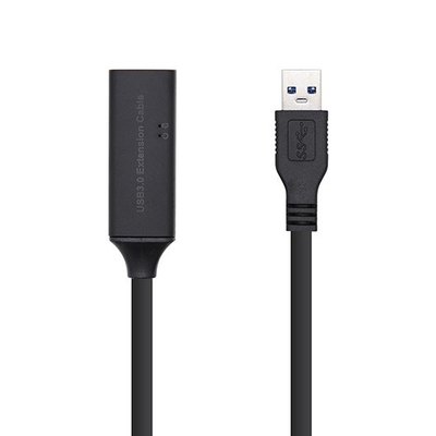 Cable prolongador USB 3.0 con conector tipo A macho en un extremo y tipo A hembra en el otro. Lleva amplificador para amplificar la señal de USB SuperSpeed USB 3.0 velocidad de transferencia de hasta 5 Gbit/s. Retrocompatible con la versión anterior USB 2.0 / 1.1. Es una solución ideal para necesidades de cable USB con Longitud de más de 5 metros hasta un máximo de 20 metros (uniendo varios cables prolongadores con amplificador). Se permite conectar un alimentador de 5V / 2A en caso de necesidad de energia adicional. (Alimentador 5V / 2A no incluido).