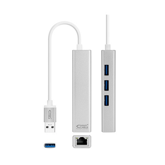 CABLE USB 3.0 A ETHERNET GIGABIT+3XUSB NANOCABLE CABLE USB 3.0 A ETHERNET GIGABIT+3XUSB NANOCABLE 3XUSB 3.0 PLATA 15CM 10.03.0403
