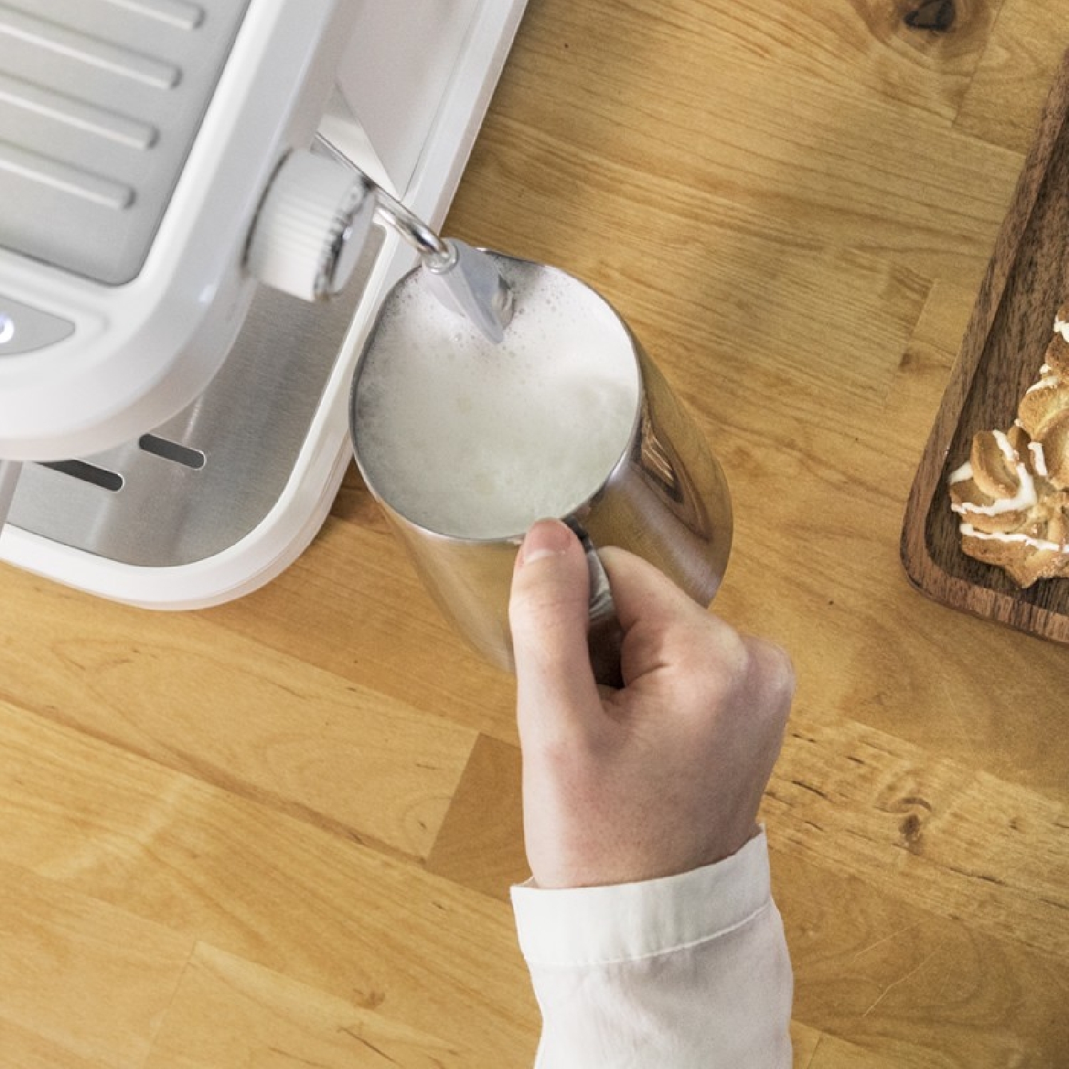 Incluye vaporizador orientable con protecciĂ³n para texturizar la leche a tu gusto y conseguir la mejor espuma para tu cafĂ©.