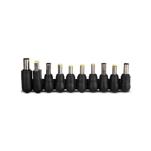 Cargador portátil con 9 conectores intercambiables que permiten ser compatible con la mayor parte de ordenadores portátiles y beneficiarse de una universalidad real. Tiene una potencia de 90W.