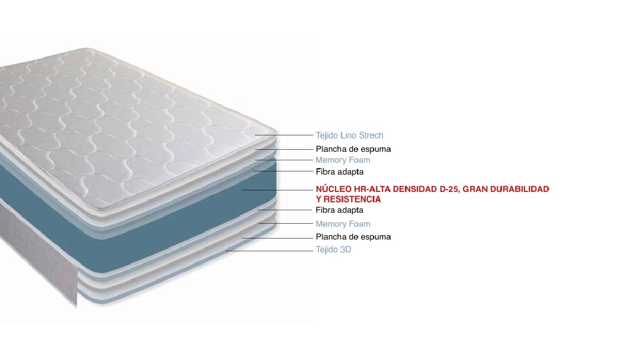 Tecnología: Núcleo HR de alta resiliencia.
