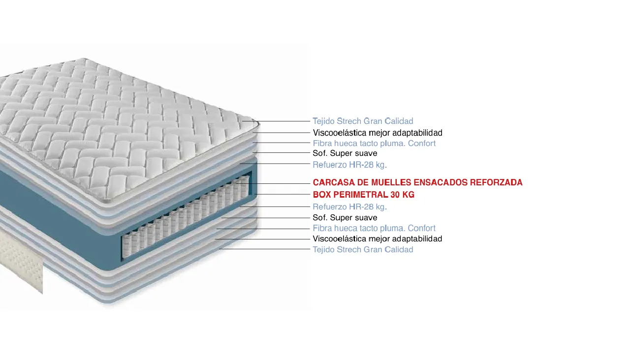 • 3 cm de Soft (1,5 + 1,5) que aportan una suavidad extra y eliminan los puntos de presión.