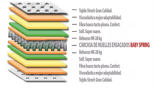 La clave de este equipo reside en su carcasa de muelles ensacados Baby Springs. A diferencia de los modelos para adultos, el sistema utilizado en el Colchón Olimpia responde con precisión al peso más ligero de niños y adolescentes. Para asegurar que la estructura resista el ritmo del día a día, incorpora un Box perimetral de 28 kg. Este refuerzo actúa como una barrera antideformación, manteniendo el producto estable incluso si los niños se sientan habitualmente en el borde.