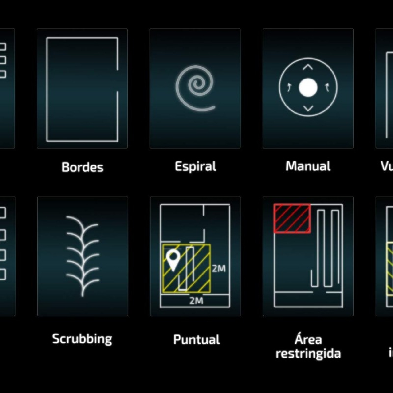 Total Surface: Se recarga y vuelve al punto exacto donde se quedó hasta limpiar la totalidad de la superficie recorrida.