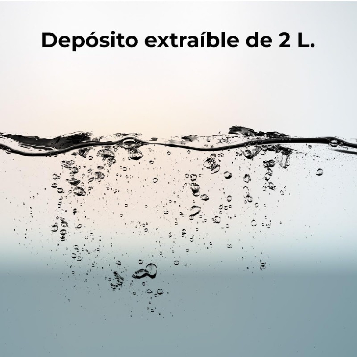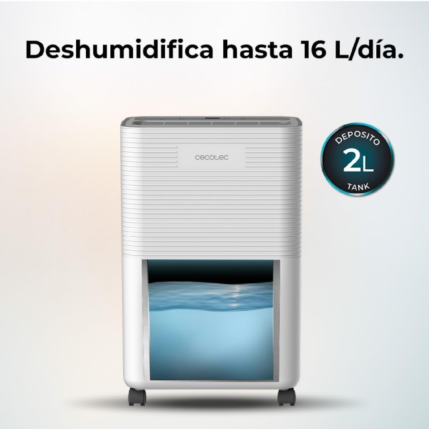 Mayor beniestar: con 16 L/día, disminuirás en gran medida la concentración de humedad en el ambiente para generar un mayor bienestar y evitar el posible deterioro de muebles. Dispone de un depósito extraíble de 2 litros de capacidad.