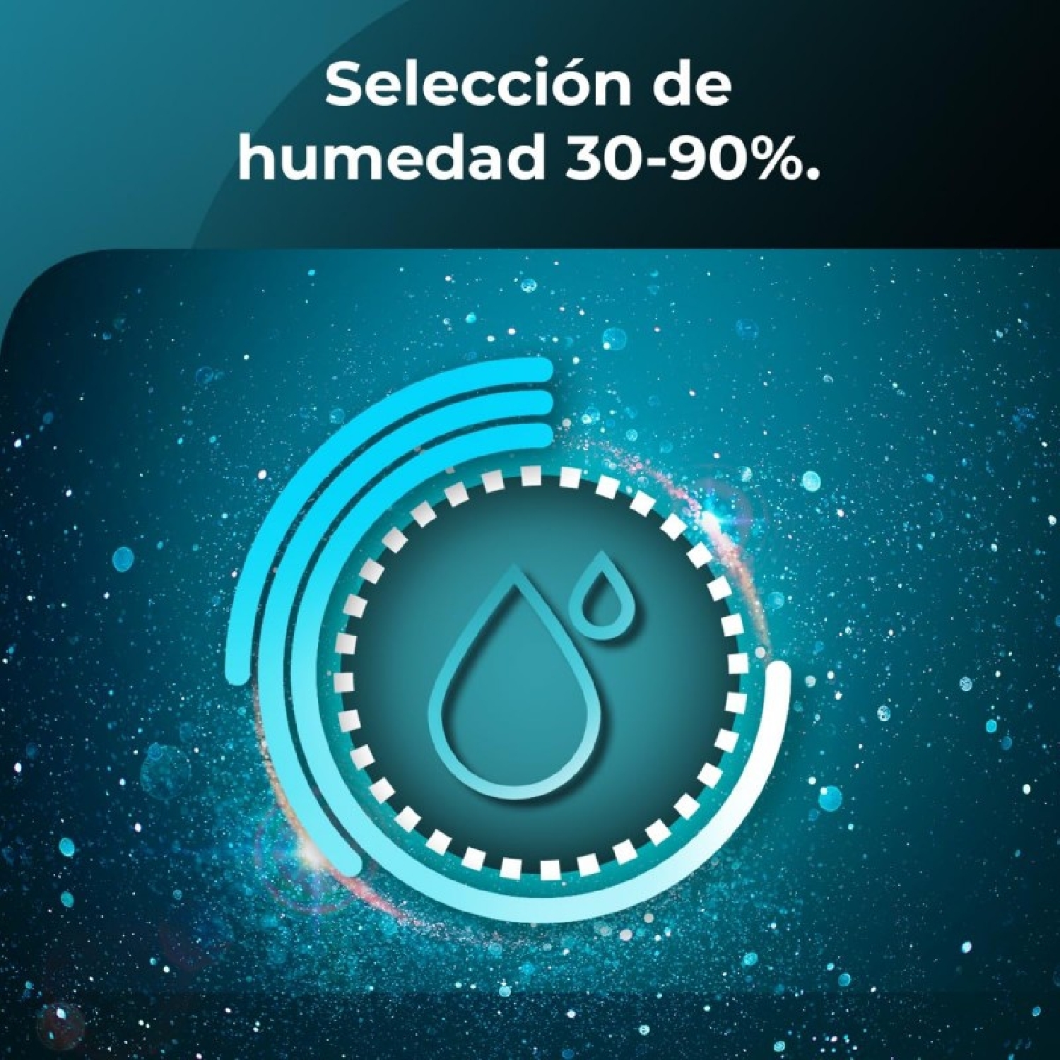Reducción de humedad: permite seleccionar el porcentaje de humedad ambiente deseado entre 30 % y 90 % para conseguir el máximo bienestar.