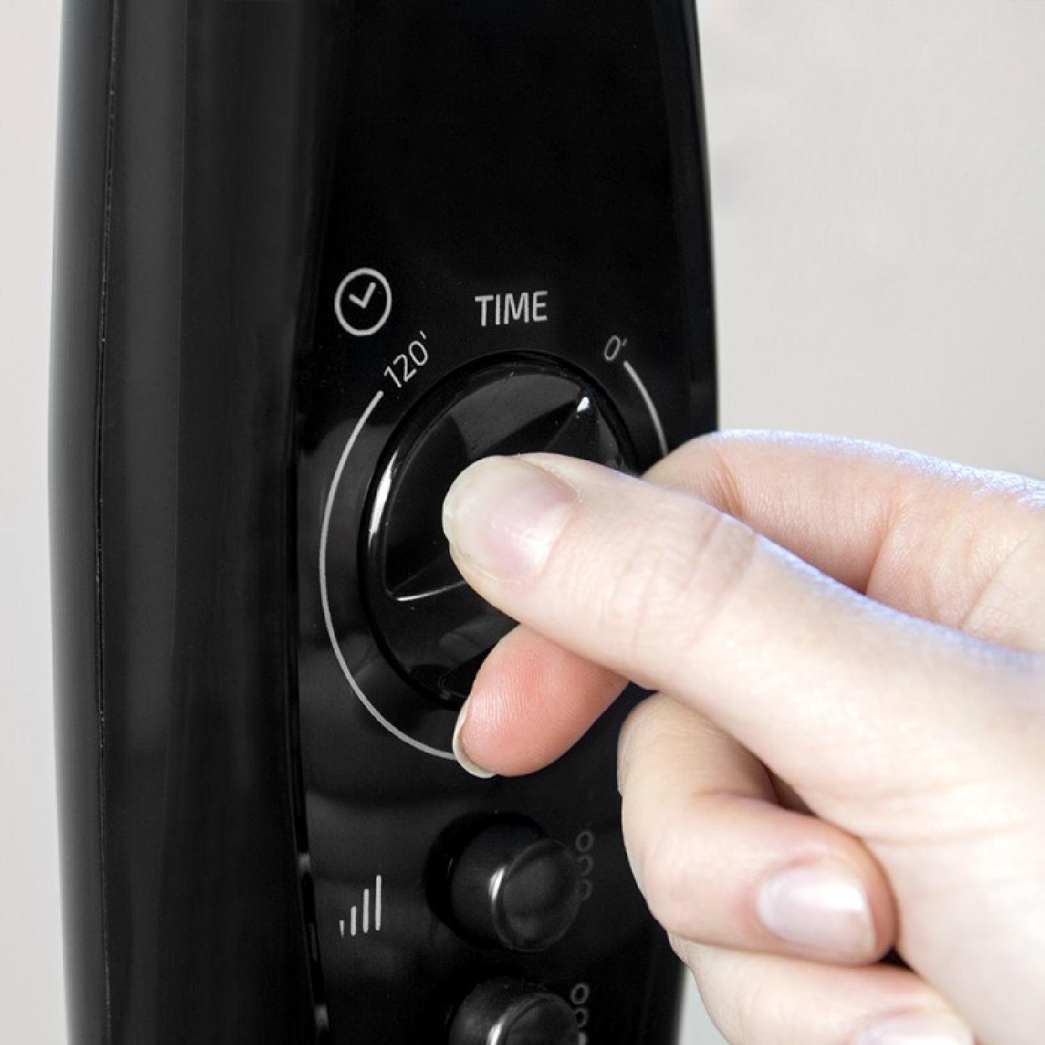 Temporizador programable un máximo de 2 horas que permite seleccionar el tiempo de funcionamiento deseado y tras el mismo el ventilador se apagará.