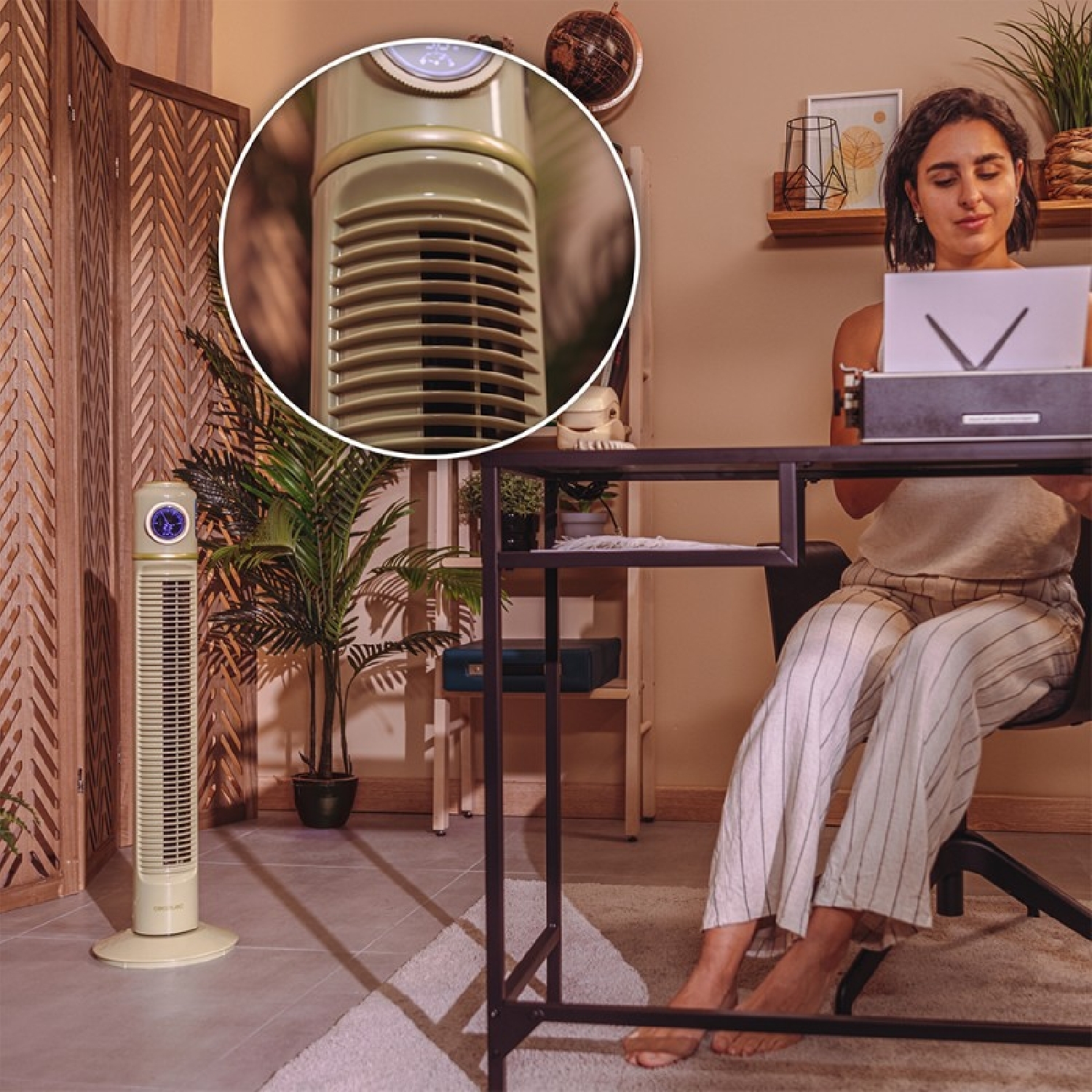 Ventilador de torre de 32″ con 40 W, LED display, control táctil y remoto, temporizador 12 horas y oscilación.