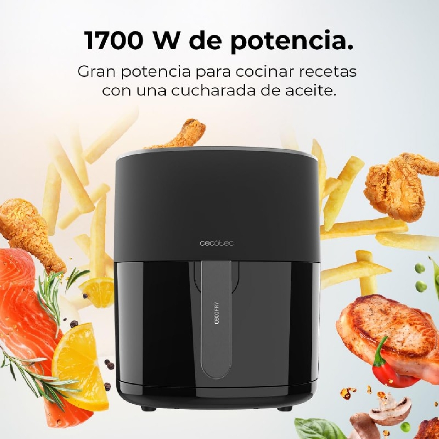 1700 W de potencia que permite cocinar de manera rápida todo tipo de platos con una sola cucharada de aceite.
