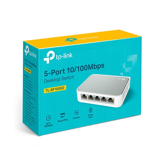 El Conmutador Fast Ethernet TL-SF1005D con 5 puertos a 10 100Mbps cuenta con 5 puertos RJ45 con autonegociación a 10 100Mbps. Todos los puertos soportan la función Auto MDI MDIX, eliminando la necesidad de cables cruzados o puertos Uplink. El conmutador es Plug-and-Play y cada uno de los puertos puede utilizarse como puerto general o puerto Uplink, se puede conectar a un servidor, hub o conmutador mediante cable directo o cable cruzado. El Conmutador Fast Ethernet TL-SF1005D con 5 puertos a 10 100Mbps de TP-LINK le ofrece una actualización económica, fácil de usar, de alto rendimiento y perfectamente integrada para convertir su red antigua en una red a 100Mbps. Aumentará el rendimiento de su red a una transferencia de datos a full duplex. La conmutación de paquetes a velocidad de cable puede ser tan rápida como la velocidad a la que su red envÃa estos paquetes.