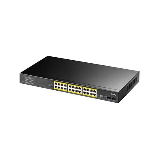 HUB SWITCH CUDY GS1028PS2 UNMANAGED PoE 300W 24-10 100 1000 BASE-T 2-1000 BASE-X SFP CCTV MODE