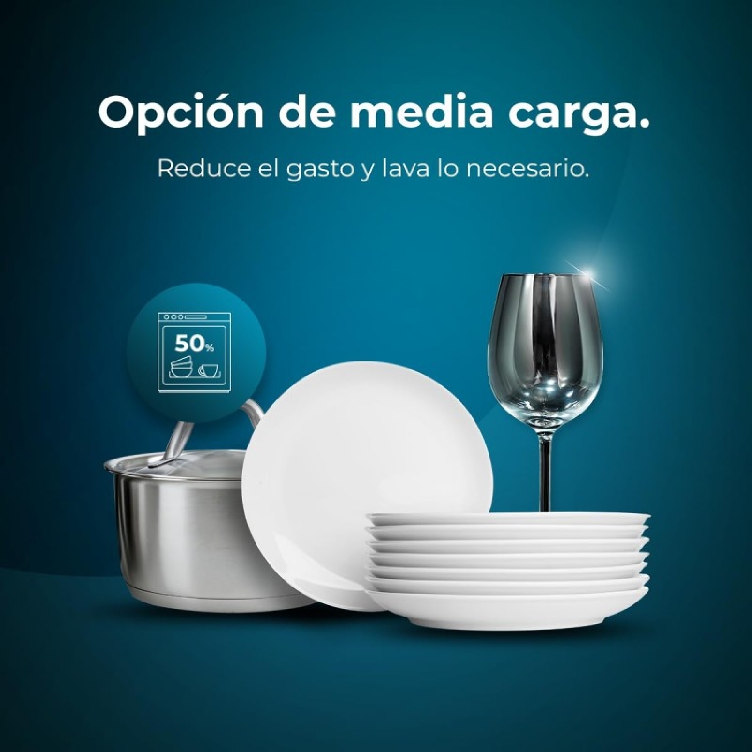 Media carga: la posibilidad de poner el lavavajillas sin que esté al completo y sin que gaste la misma cantidad de recursos que si estuviera lleno.