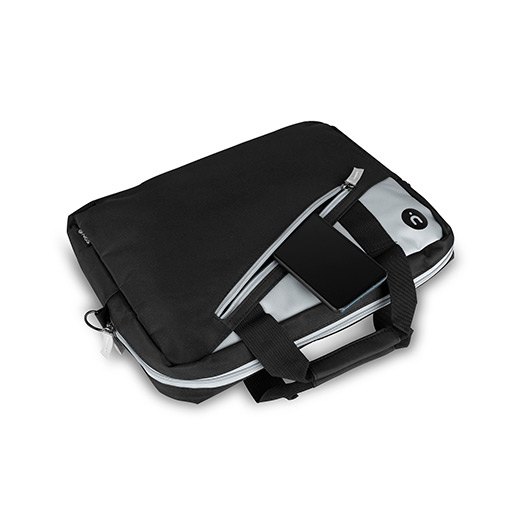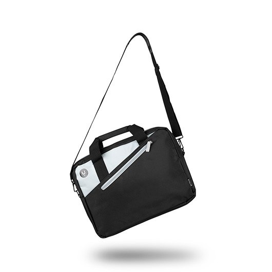Maletín para portátiles de hasta 14” con compartimento principal acolchado (345×242 mm). Color negro combinado con detalles en antracita. Dos compartimentos principales para tener tus pertenencias organizadas. Bolsillo externo donde puedes guardar los accesorios y tener un acceso rápido. Correa de hombro ajustable y extraíble.