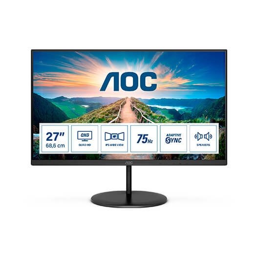 MONITOR LED 27 AOC Q27V4EA NEGRO IPS QHD 75HZ 4MS 1xHDMI 1xDP A-SYNC 2x2W VESA
