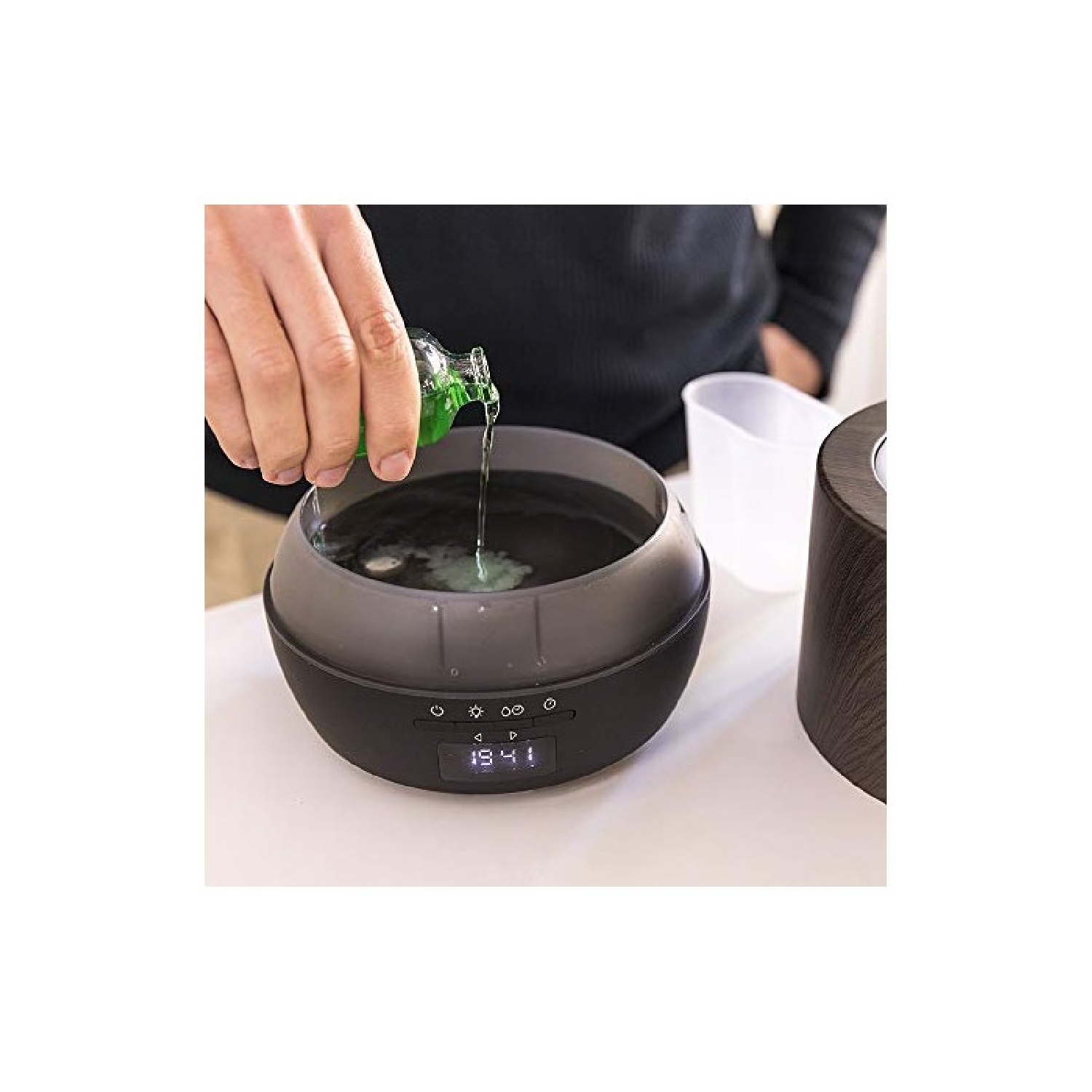 Posee una pantalla LED que muestra la hora, gracias a la cual se pueden configurar otras funciones del difusor como la alarma, los modos o el temporizador.
