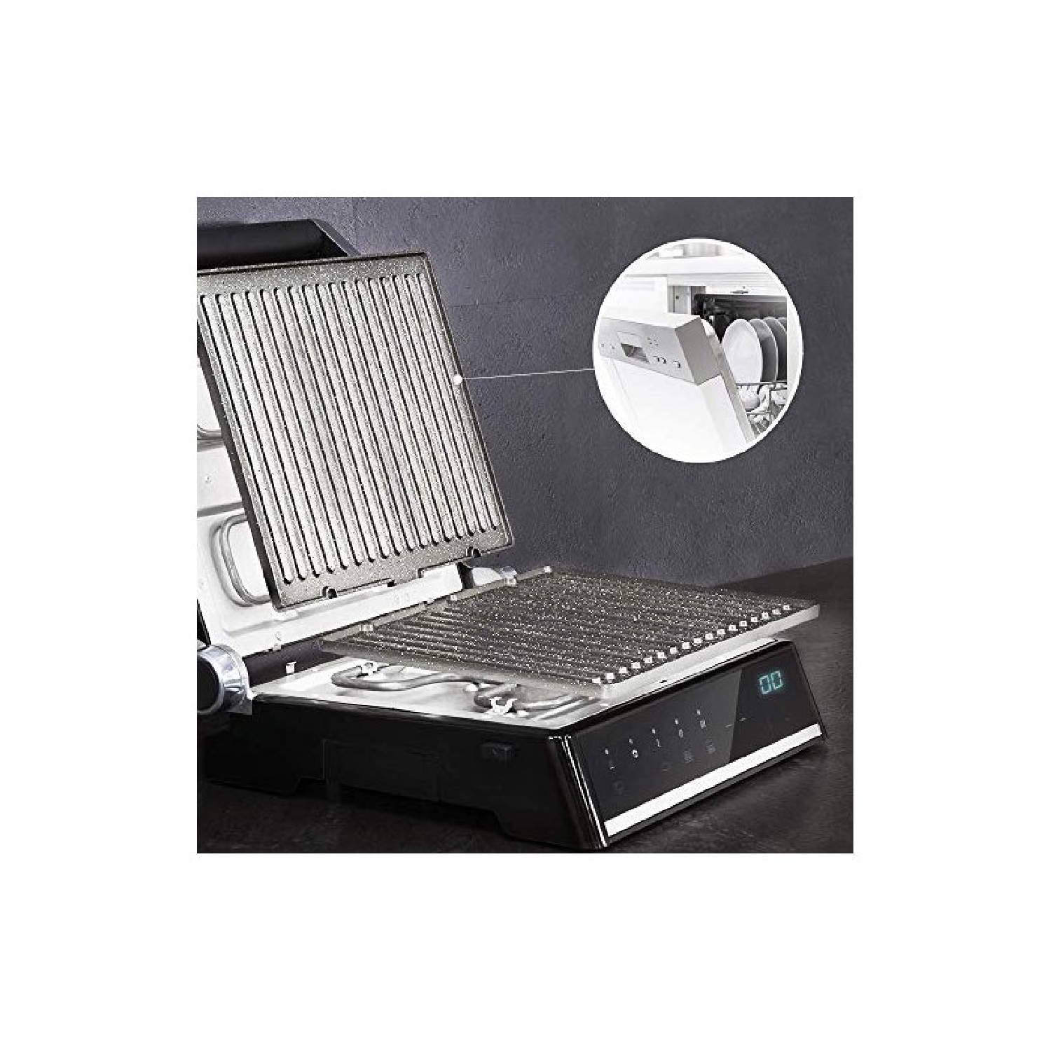 con envío gratuitoParrilla eléctrica de 2000 W con sistema AutoCook que ajusta el tiempo y temperatura en función del modo y el punto de cocción seleccionados, placas extraíbles con revestimiento RockStone aptas para lavavajillas y apertura de 180º.