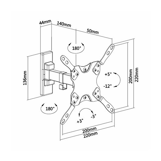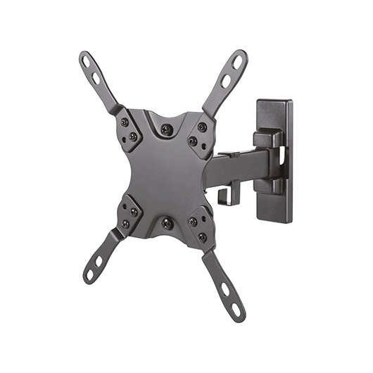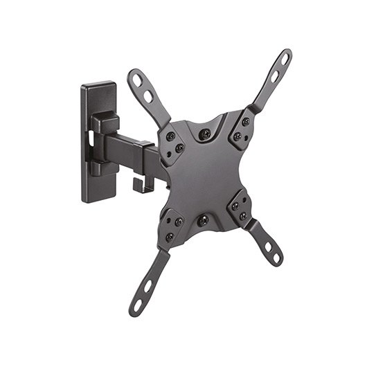 Soporte eco giratorio, inclinable y nivelable para monitor/TV 20kg (2 pivotes) de 13”-42”. Fabricado con acero de alta resistencia y pintado con pintura electrostática para un acabado perfecto. Incluye tacos de la marca FISCHER en el kit de montaje para una instalación profesional y segura. VESA Máximo: 200x200mm (Compatible con VESA de 75×75, 100×100, 200×100, 200x200mm). Carga Máxima: 20kg. Angulo de Inclinación: -12º / +5º (depende de la instalación y del espacio disponible). Angulo de giro: -90º / 90º (depende de la instalación y del espacio disponible). Angulo de nivelación: -3º / +3º. Distancia de la pared: ajustable entre 60 y 190mm (depende de la instalación y del espacio disponible). Color: Negro.