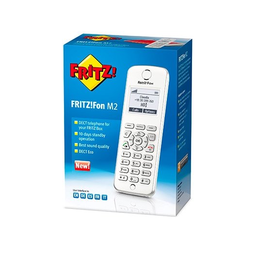 EL ACCESORIO IDEAL PARA TU FRITZ!BOX. El ergonómico teléfono inalámbrico FRITZ!Fon M2, concebido especialmente para interactuar con el FRITZ!Box con base DECT, te permitirá tener el mejor acceso a la comodidad de la telefonía. Cautiva por su diseño, sofisticado, una calidad del sonido extraordinaria y funciones adicionales para multimedia y servicios de Internet. COMODIDAD EN TELEFONÍA Y MUCHO MÁS. El FRITZ!Fon M2 es el dispositivo ideal para acceder al mundo de la comodidad de la telefonía inalámbrica. Pero no solo eso: de manera adicional, el FRITZ!Fon ofrece un amplio espectro de funciones multimedia y servicios de Internet. Comunicación, información y entretenimiento unidos en un dispositivo estético de uso sencillo. CALIDAD DE SONIDO ÓPTIMA. El sonido natural del FRITZ!Fon M2 te permitirá disfrutar de una calidad de voz extraordinaria en todo momento gracias a la telefonía HD tanto si escuchas la llamada directamente desde el FRITZ!Fon, como si activas la función de manos libres y altavoz. Por ello, incluso las llamadas más largas se convertirán en un verdadero placer. EL MEJOR CONTACTO CON LA BASE. El FRITZ!Fon M2 fue concebido especialmente para su uso con un FRITZ!Box con base DECT. Cuando se combinan ambos dispositivos, el FRITZ!Fon ofrece todas sus funciones y te permite tener acceso a las actualizaciones gratuitas. FÁCIL DE USAR. Con el FRITZ!Fon M2, hablar por teléfono será toda una diversión: gracias a su teclado ergonómico y al control inteligente del menú, podrá tener acceso a toda la información que usted haya guardado dentro de su FRITZ!Fon.