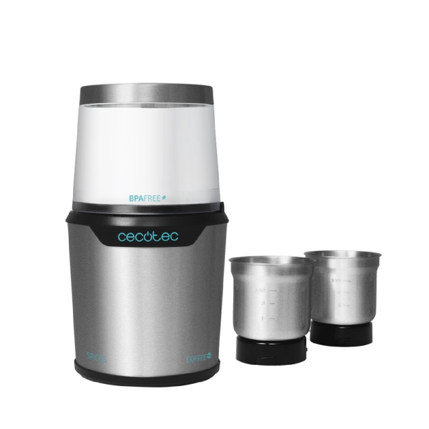 con envío gratuitoMolinillo para moler y triturar café y especias, con dos vasos intercambiables y cuchillas con recubrimiento de titanio.