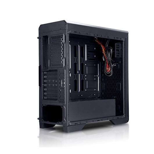 Hummer ZX Nox introduce Hummer ZX, el nuevo modelo que se suma a la exitosa serie Hummer, compuesta por productos de altas prestaciones para los más exigentes. Hummer ZX es un chasis en formato semitorre con múltiples opciones de almacenamiento y un completo sistema de ventilación, donde podrás instalar todos los componentes de manera ordenada, sin renunciar al diseño o al espacio. – Compartimento aislado para la fuente y para los discos duros para un rendimiento óptimo en refrigeración – Ventana lateral acrÃlica – Controlador de velocidad para hasta 5 ventiladores – Gran opción para sistemas de refrigeración lÃquida – Incluye 3 ventiladores de 120 mm – Conexión USB 3.0 de alta velocidad – Excelente sistema para ordenar los cables – Filtros antipolvo – Espacio para instalar hasta 5 ventiladores – Compatible con gráficas de gran tamaño Elegante diseño Hummer ZX cuenta con un elegante frontal de aluminio con rejilla metálica de baja resistencia, que garantiza un silencioso y eficaz rendimiento, permitiendo un gran flujo de aire al interior del equipo para mantener todos los componentes bien refrigerados. Su diseño con lÃneas limpias envuelven un amplio espacio para alojar componentes de alto rendimiento, asà como sistemas de refrigeración avanzada para alcanzar el mayor potencial de todos los componentes. La ventana acrÃlica que incorpora permitirá ver todos los componentes del interior del equipo. Fácil acceso En el panel superior se encuentran dos puertos USB 2.0 y dos puertos USB 3.0, asà como las conexiones de audio. Además, cuenta con dos controladores de velocidad para controlar hasta cinco ventiladores del interior, gracias a los cuales, podremos regular la velocidad de estos en tres posiciones: LOW STOP HIGH. Sistema de ventilación Hummer ZX ha sido diseñada para que el flujo de aire en el interior del equipo sea óptimo. Cuenta con tres ventiladores de 120 mm preinstalados, dos en el frontal y uno en la parte posterior. Además, es posible instalar dos ventiladores adicionales de 120 mm en la parte superior. Cuenta con un compartimento en la parte inferior para ubicar la PSU y los discos duros, de manera que el calor desprendido por estos, no se transfiera al resto de componentes. Gracias a la rejilla del frontal y los ventiladores, el caudal de aire frÃo, entrará directamente al interior para refrigerar la gráfica y el resto de componentes. La disposición de la PSU y el ventilador trasero, ayudarán a expulsar todo el calor al exterior, permitiendo un eficaz flujo de aire. Opciones de refrigeración Un equipo de altas prestaciones, exige un refrigeración superior, que permita mantener en perfecto estado el funcionamiento de todos los componentes, por eso Hummer ZX ofrece la posibilidad de albergar en su interior sistemas de refrigeración lÃquida, ya que incorpora entre otros detalles huecos pasa tubos. Hummer ZX cuenta con espacio para montar 3 radiadores, uno frontal de 120 240 mm, uno superior de 120 240 mm y un trasero de 120 mm, por lo que ofrece infinitas combinaciones para albergar un sistema de refrigeración superior. Gestión del cableado Gracias al gran lateral para la gestión del cableado, tras la placa base, es posible realizar un montaje limpio y ordenado, para que nada influya en la circulación de aire. En el interior de Hummer ZX es posible instalar gráficas de gran longitud, hasta 415 mm y cuenta con 7 slots de expansión. Además, permite albergar coolers de una altura máxima de 160 mm. Gran capacidad de almacenamiento Hummer ZX dispone de espacio para instalar hasta 7 unidades de almacenamiento, ya que cuenta con dos bahÃas externas de 5.25 y capacidad para cinco unidades más en su interior, dos de 3.5 en la parte inferior y tres SSD de 2.5 en los laterales. Esta particularidad de Hummer ZX permite instalar tres SSD en el panel lateral del chasis, tras la placa base, con lo que se aprovecha mejor el espacio interior y contribuye a mejorar el flujo de aire. Además, es posible aprovechar las bahÃas inferiores de 3.5 instalando en su lugar, un SSD de 2.5 de manera lateral.