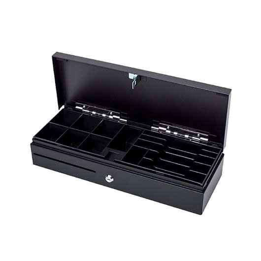 TPV CAJON PORTAMONEDAS MUSTEK LB-170A NEGRO 460X170MM 7 BILL 8 MON. APERTURA VERTICAL RJ12