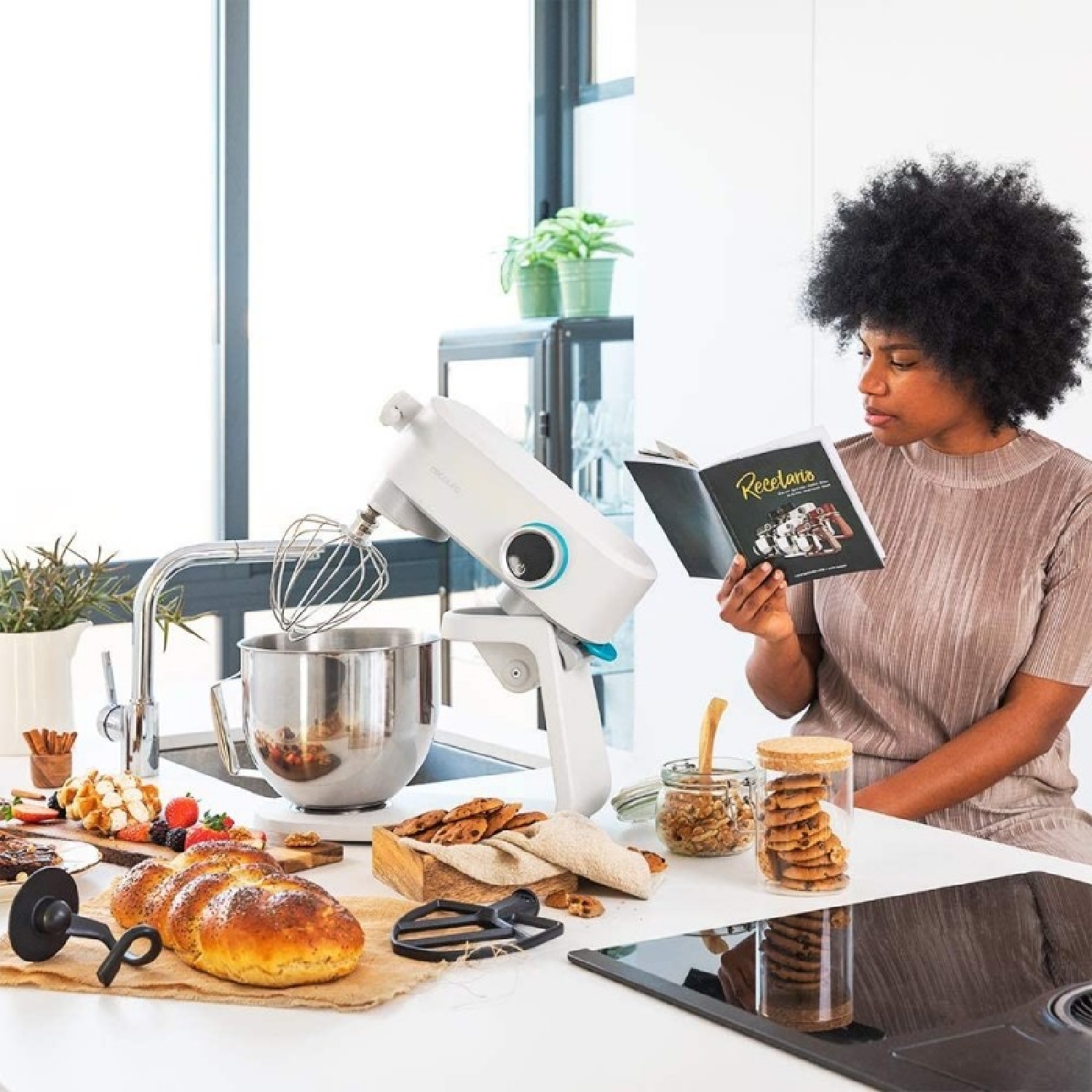 con envÃo gratuitoBatidora amasadora de aluminio fundido con motor DC de 800 W, selector digital con 8 velocidades y bol de acero inoxidable de 5,2 L. Incluye un batidor de varillas, mezclador y brazo amasador.