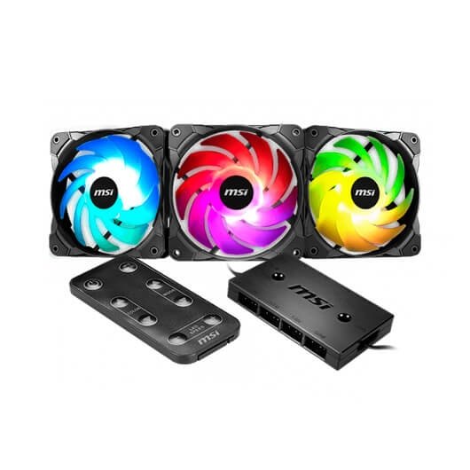 VENTILADOR 120X120 MSI RAINBOW FAN PACK KIT 3 PCS ARGB 1500 RPM CONTROLADOR ARGB