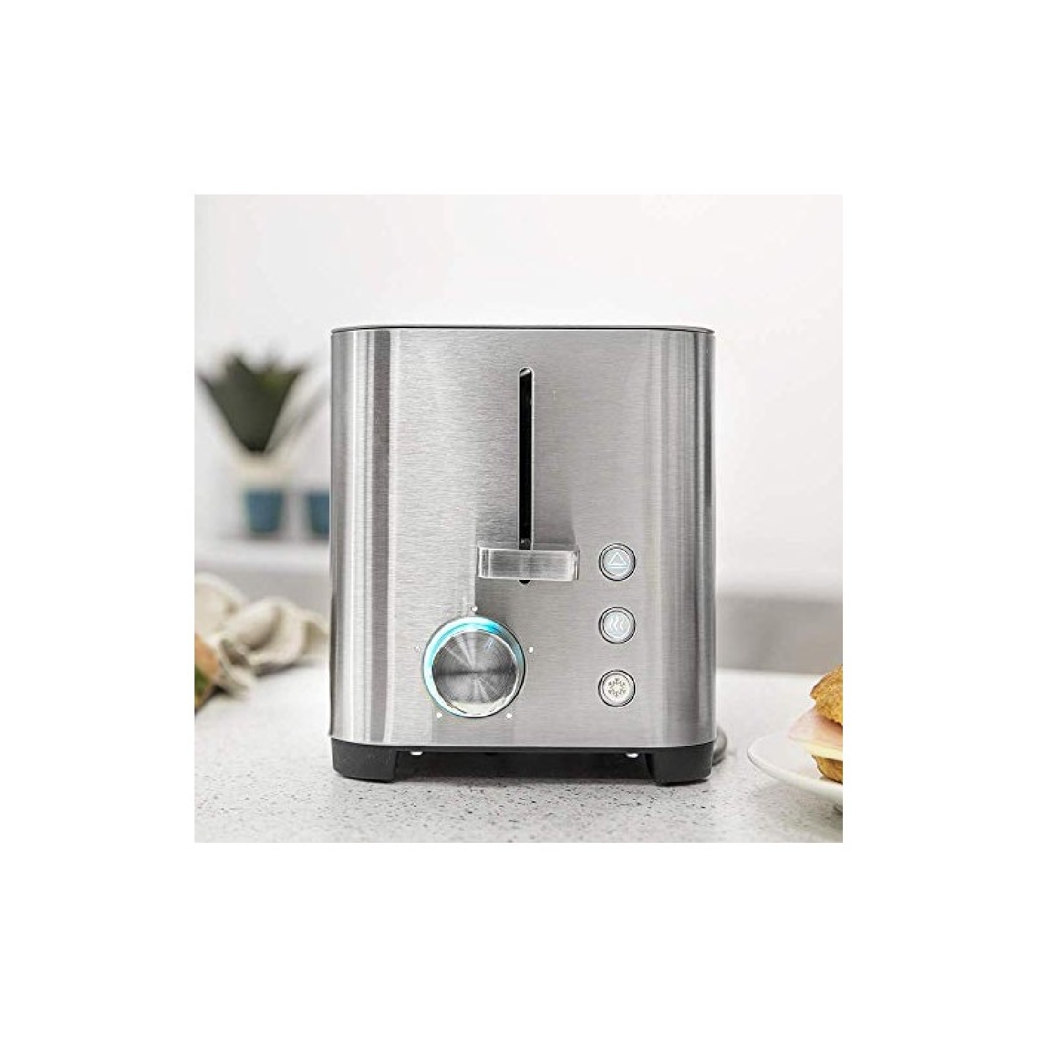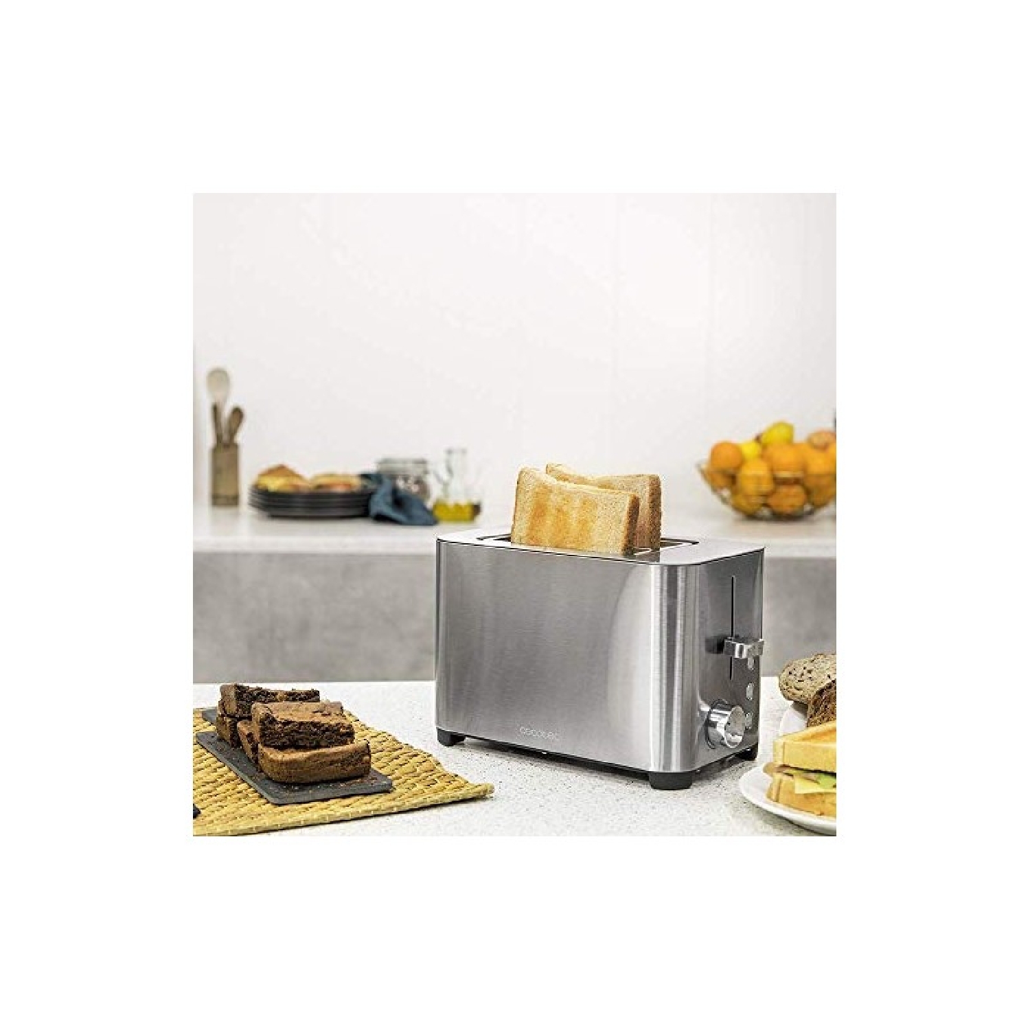 con envĂo gratuitoTostadora de pan de doble ranura corta, 850W de potencia y soporte para panecillos y bollerĂa.